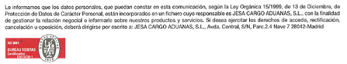 JESA CARGO ADUANAS, ES UNA EMPRESA CONSOLIDAD DESDE EL AÑO 2008 CON UNOS PROFESIONALES TANTO EN ADUANAS, COMO EN EL MUNDO DEL TRANSPORTE CON MUCHOS AÑOS DE EXPERIENCIA. LES PODEMOS AYUDAR A RESOLVER CUALQUIER PROBLEMA QUE SE LE PLANTEE, DANDOLE UN ASESORAMIENTO EFICAZ Y RAPIDO.
